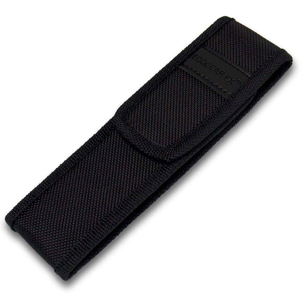 Protect Your Flashlight and Gear This LED flashlight holster with belt attachment featuring a long retention flap with Velcro closure. The quick-detach belt loop allows user to attach or remove holster without having to remove belt. Fits most medium size flashlights, tools and knives. Made of heavy-duty nylon to help keep your gear protected from damages.
